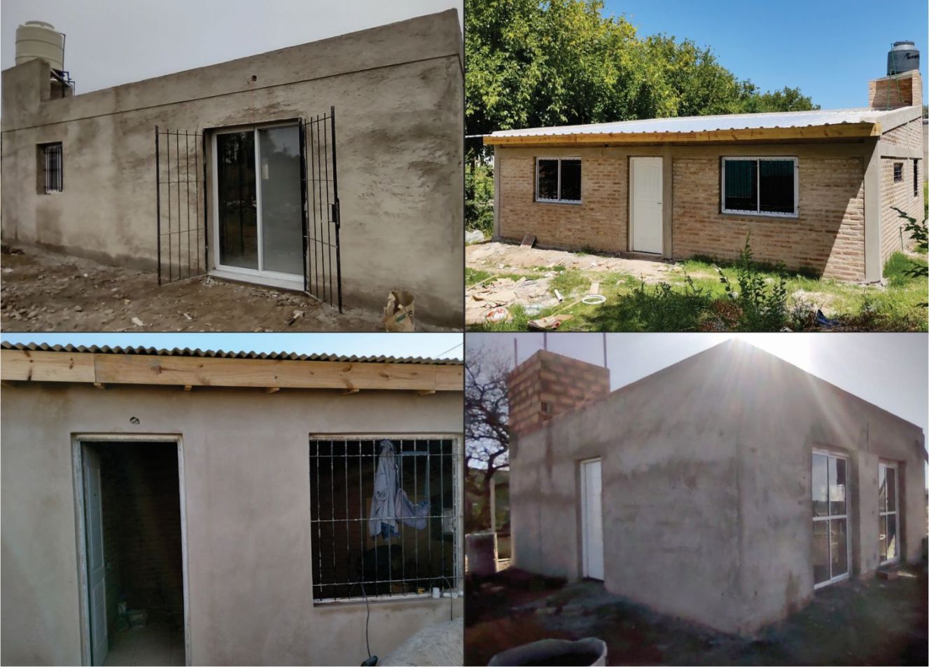 Diseño sin cargo. Armado de hierros de platea, armado de estructura de platea, llenado de platea con hormigón elaborado H17 con sus anclajes. Armado de sistema interno integral de cloacas de la casa. Levantamiento de mampostería hasta altura de techado, armado, encofrado y llenado de columnas, vigas y encadenados. Revoque grueso interior. Precio publicado en base a construcción en una sola planta, con un baño.